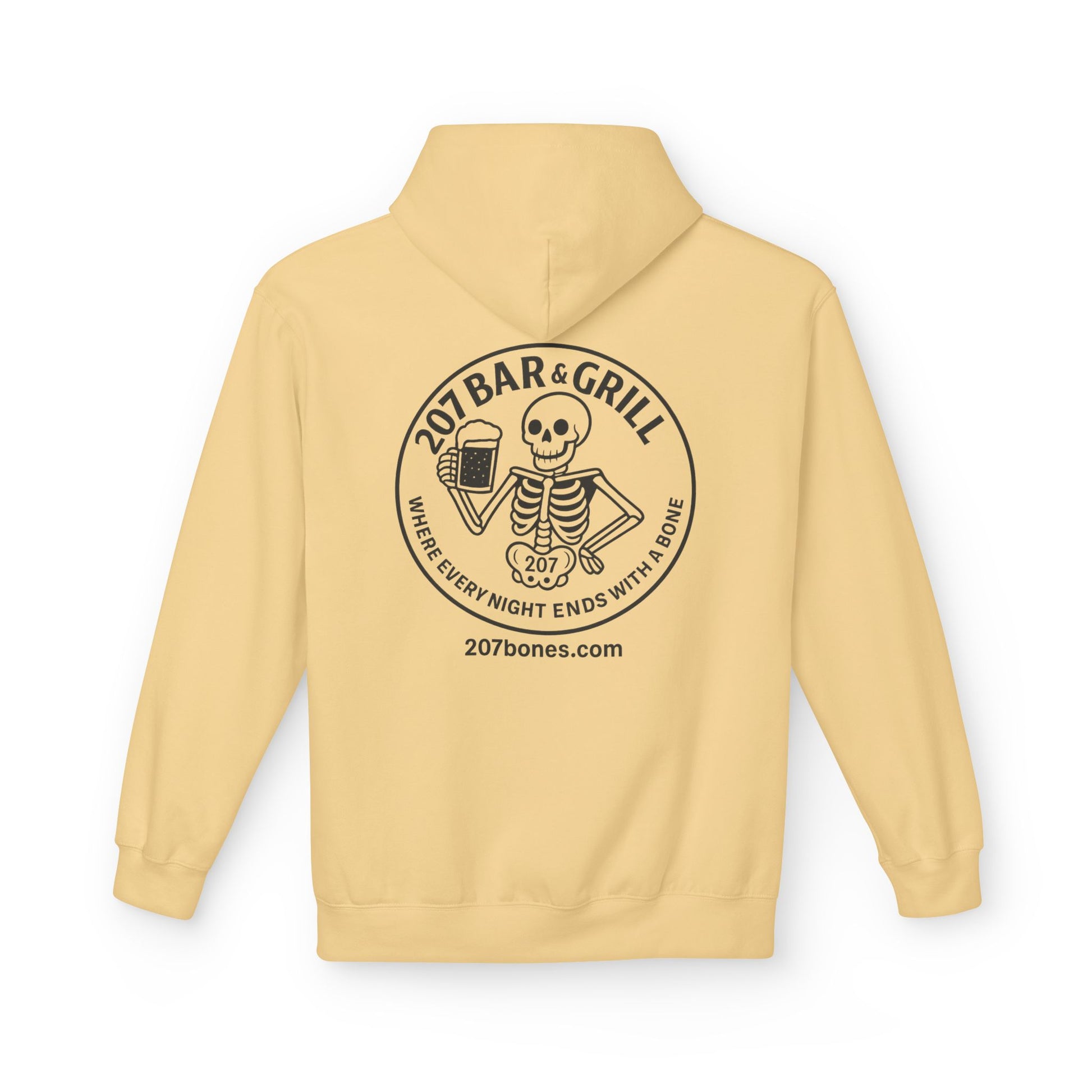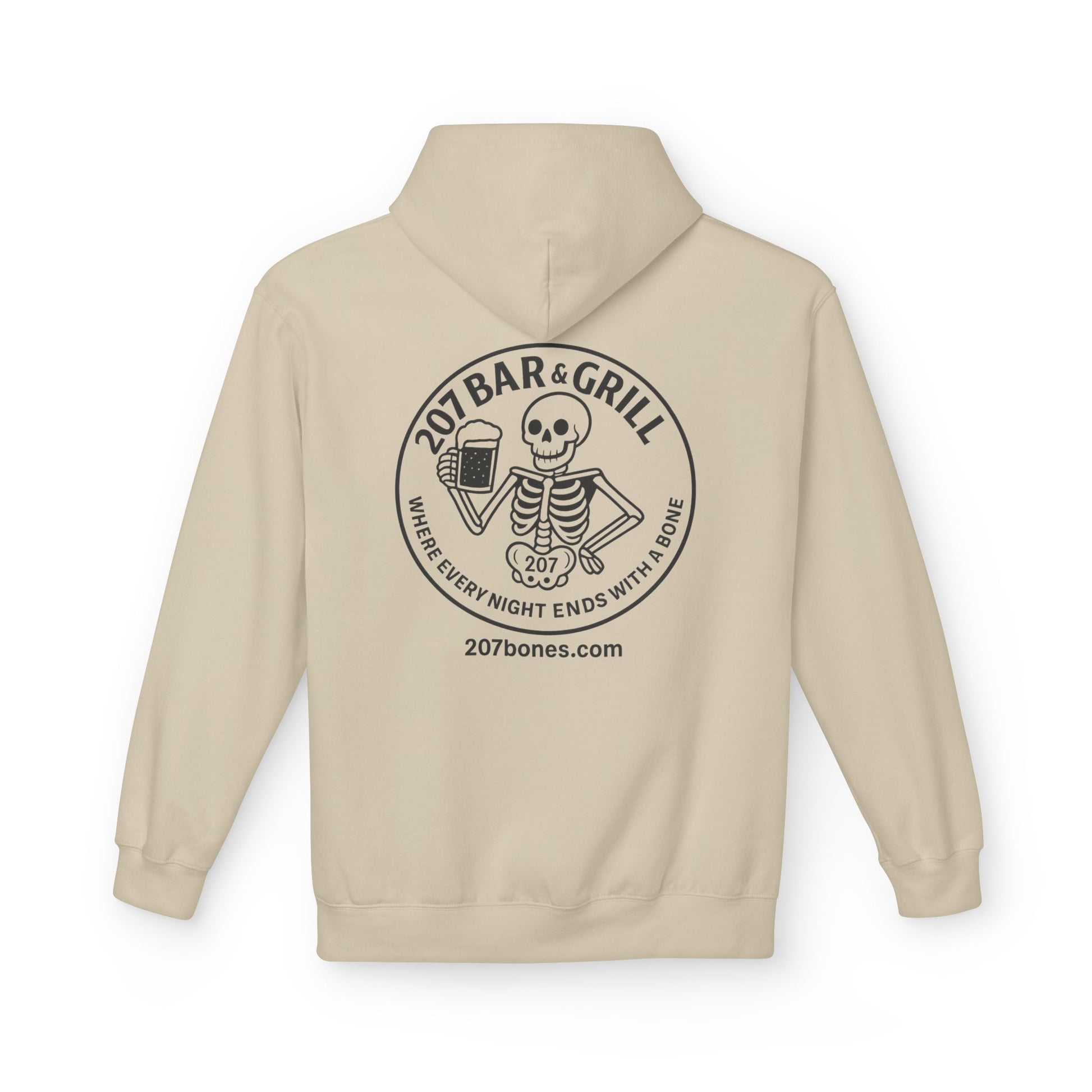 207 Bar & Grill Skeleton Hoodie, Softstyle Midweight Fleece, Unisex Pullover, Fun Gift for Halloween, Cozy Lounge Wear
