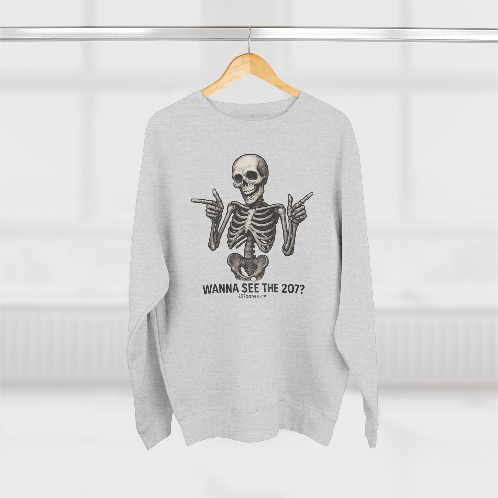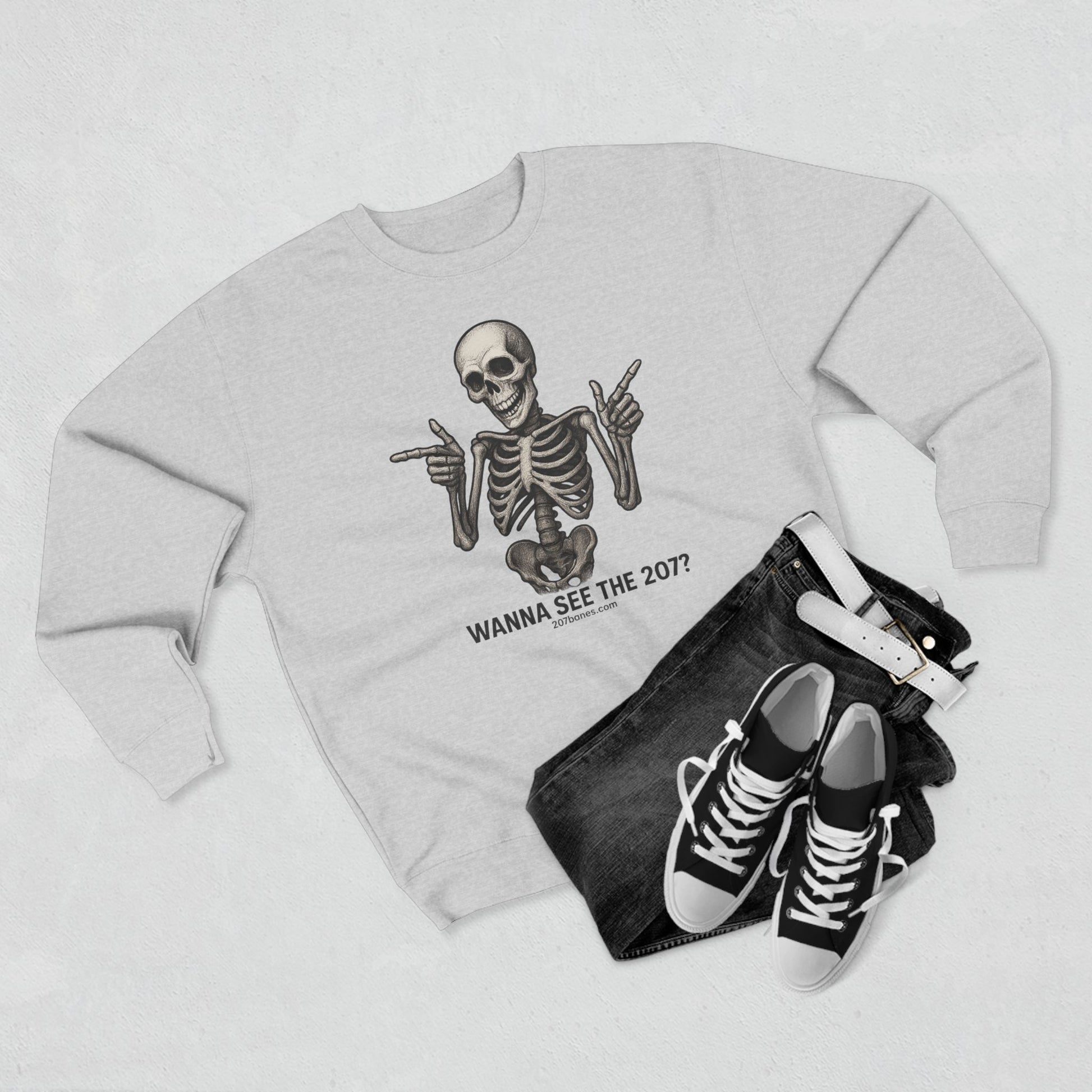 Skeleton Crewneck Sweatshirt - Wanna See the 207? Casual Halloween Apparel, Unisex Sweatshirt, Cozy Layering Piece, Funny Gift Idea, [...]